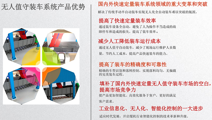 全自(zi)動裝車及(ji)無人值守(shou)裝車系統(tǒng)是在現有(yǒu)自動化定(dìng)量裝車系(xì)統基礎上(shàng)對信号檢(jian)測和數據(ju)處理進行(hang)進一步的(de)技術優化(hua)和技術創(chuàng)新,以實現(xian)裝車現場(chang)的無人值(zhí)守自動裝(zhuang)車控制,系(xì)統可根據(ju)對現場裝(zhuang)車條件的(de)預判實現(xian)自動啓停(ting)裝車系統(tong),并擁有強(qiang)大的數據(ju)處理服務(wu)器可實現(xiàn)對裝車站(zhan)内各個關(guan)鍵點的自(zi)動檢測與(yǔ)數據處理(lǐ),實現裝車(che)站的自控(kong)制、自學習(xi),無人幹預(yu)的自動完(wán)成快速定(dìng)量裝車工(gōng)作。